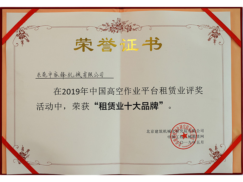 東莞市家鋒機(jī)械有限公司成立于2016年,是專業(yè)的高空作業(yè)平臺(tái)租賃、銷售服務(wù)商,擁有徐工、中聯(lián)、吉尼、捷爾杰等國(guó)內(nèi)外知名品牌的高空作業(yè)設(shè)備八千多臺(tái),連續(xù)四屆榮膺“中國(guó)高空作業(yè)設(shè)備租賃商十強(qiáng)企業(yè)”及“中國(guó)高空作業(yè)平臺(tái)租賃業(yè)十大品牌”,并于2021年首次榮膺“中國(guó)工程機(jī)械租賃商十強(qiáng)”,是立足華南、輻射全國(guó)、規(guī)模大、服務(wù)優(yōu),極具競(jìng)爭(zhēng)力和影響力的企業(yè)。短短幾年,已相繼與世界機(jī)械巨頭徐工集團(tuán)、中聯(lián)重科達(dá)成戰(zhàn)略合作。